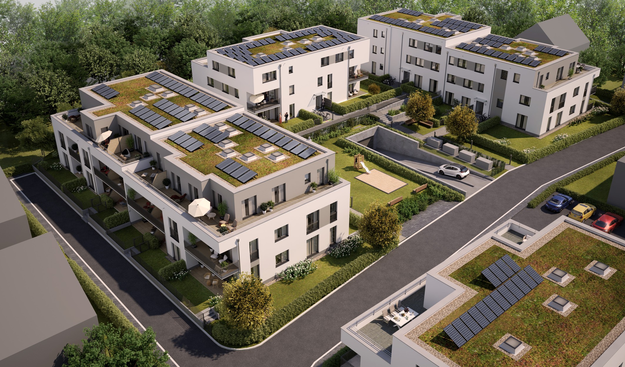 Neubau von 3 Mehrfamilienhäusern mit 47 Wohnungen auf einer Tiefgarage im